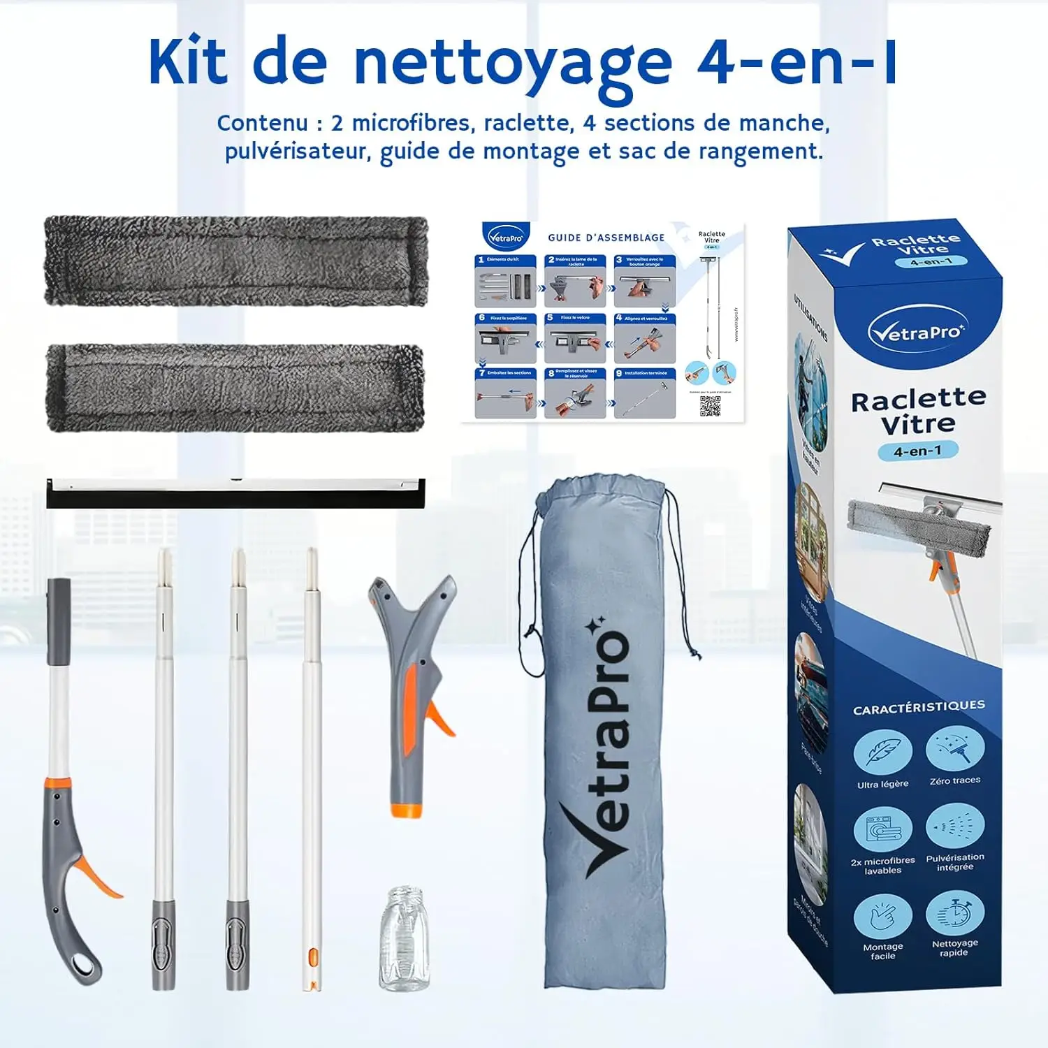 Raclette télescopique professionnelle Vetrapro – vitres impeccables sans effort